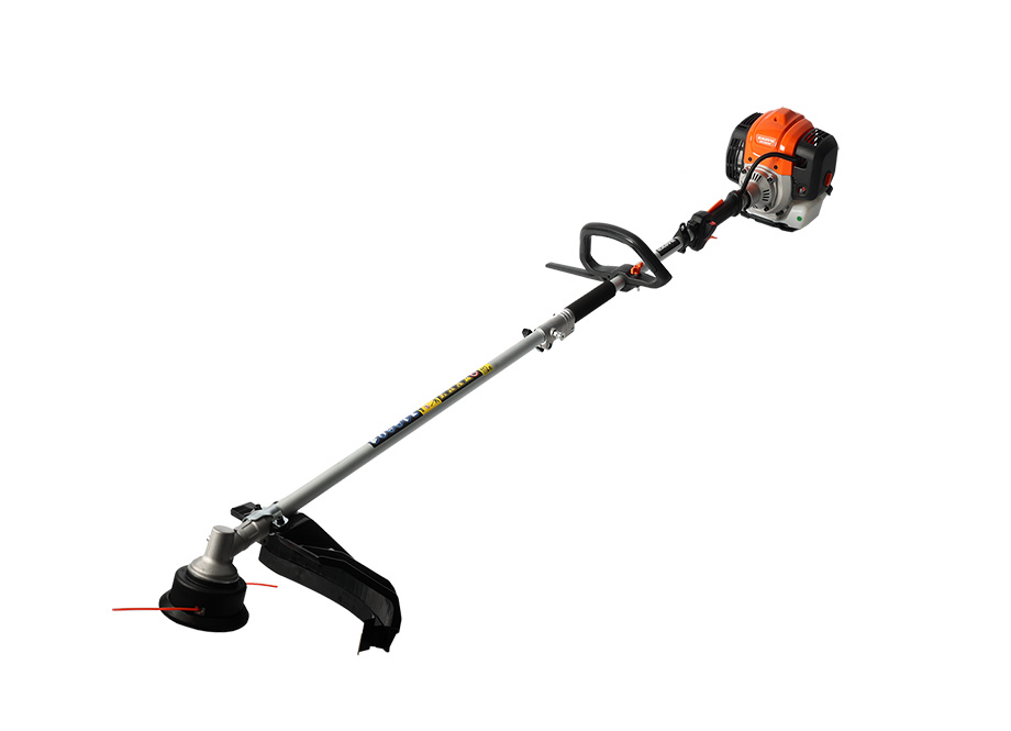 Inclus : Harnais, tête débroussailleuse nylon, disque débroussailleuse, tête taille-haies, tête de taille avec guide-chaîne et chaîne incluses.